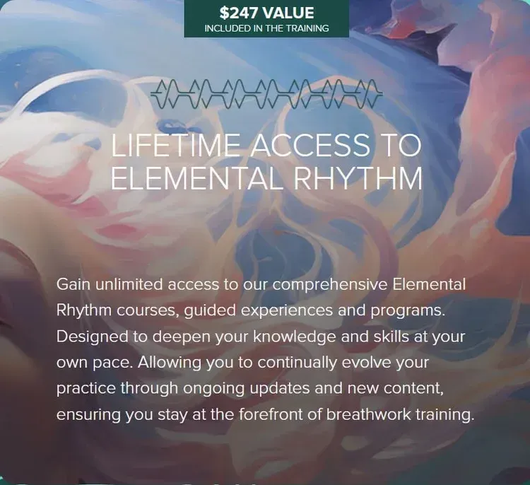 Once he began sharing it with others he quickly realized what worked for him was also working for those he shared it with. This is the first ever in person Elemental Rhythm facilitator training in the continental US! The Elemental Rhythm Breakthrough Experience (Facilitator Training) combines sound, movement, various breathing patterns and holds, guided mediation and support circles to create an experience like no other. When practiced regularly, we have seen some incredible transformations in peoples lives. In the Facilitator Training you will be taught everything you need to know in order to facilitate this experience. This training will be both an in person and online training. Once you pass the final exam, you will become a certified breathwork facilitator.
